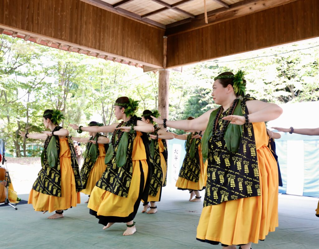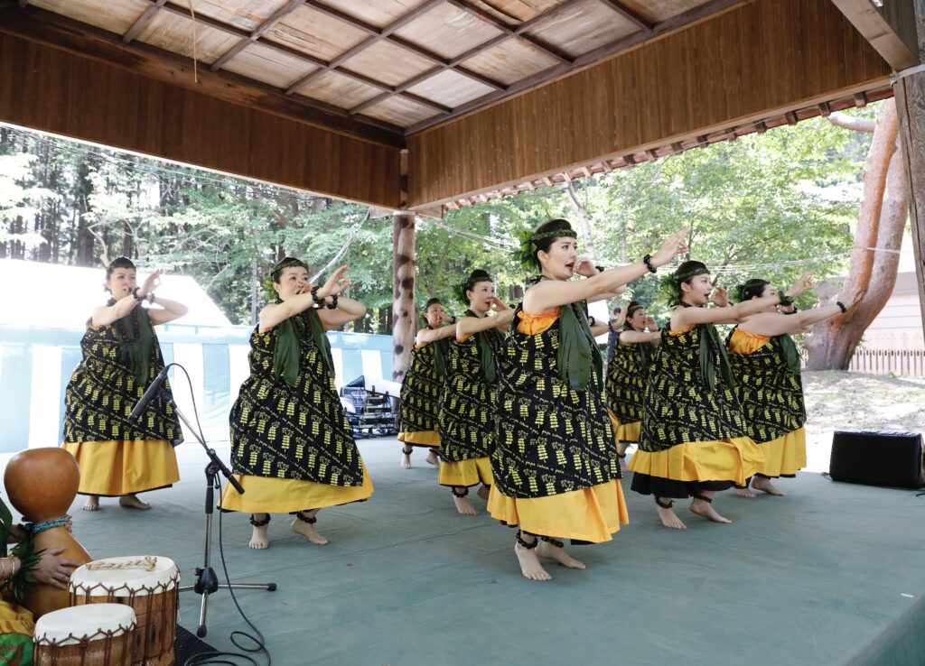 パフォーマンスでは、初めてLehua先生にカヒコを踊っていただき、